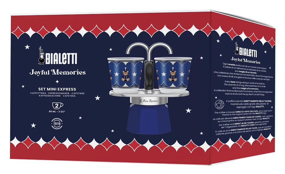 A Bialetti karácsonyi kollekciójának főszereplői a gyermekkori emlékek, melyben a karácsony egy örömteli időszak, tele varázslattal és várakozással. A gyönyörű karácsonyi, játékos mintájú 2 adagos, Mini Express kávéfőző kiváló karácsonyi ajándék, ünnepi csomgolásban.