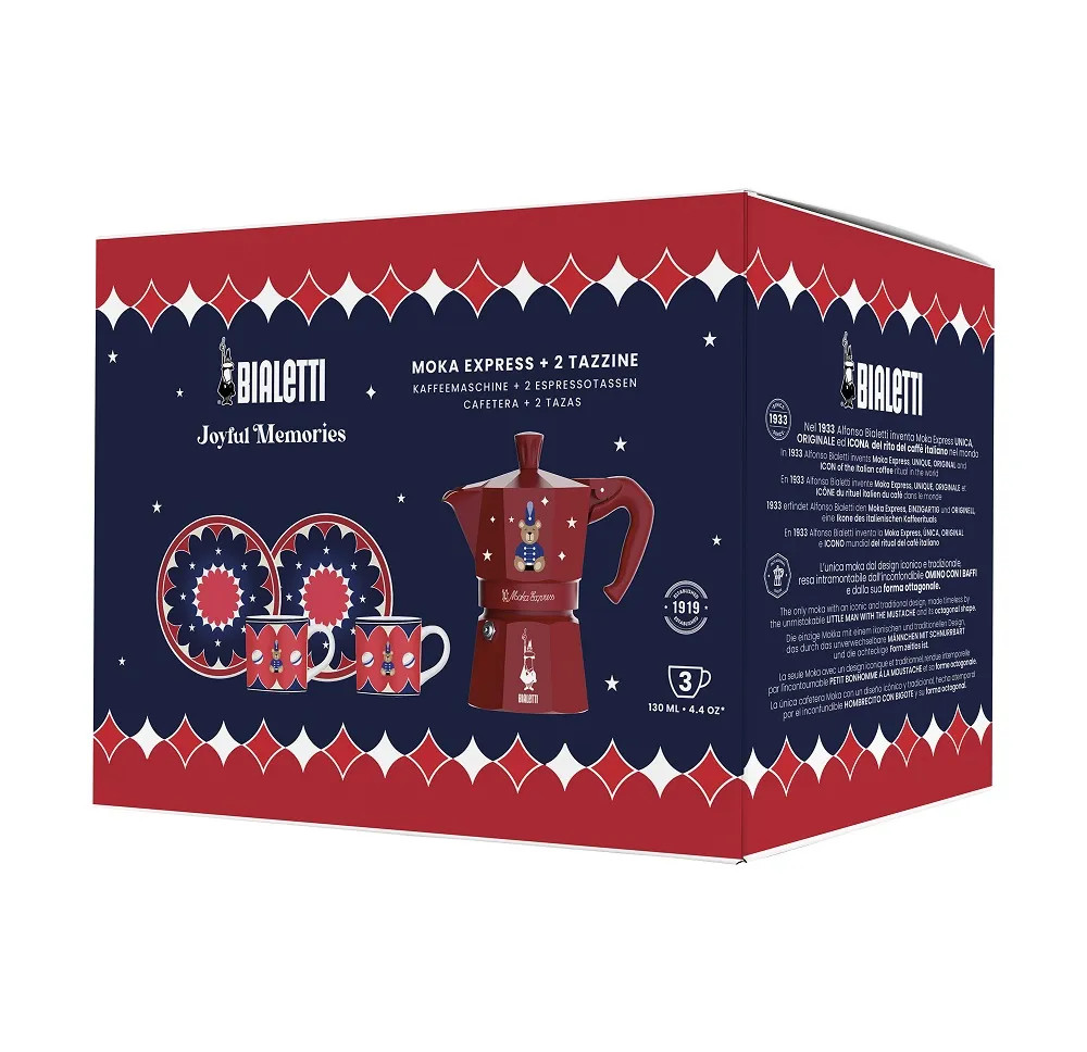 A Bialetti karácsonyi kollekciójának főszereplői a gyermekkori emlékek, melyben a karácsony egy örömteli időszak, tele varázslattal és várakozással. A gyönyörű karácsonyi, játékos mintájú 3 adagos, Moka Express kávéfőző kiváló karácsonyi ajándék. Most egy karácsonyi mintájú csésze szett egészíti ki a tökéletes szettet, ünnepi csomagolásban.