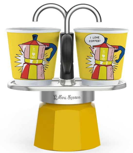 Az Art kollekció egy újabb tökéletes Mini Express kotyogója, Roy Lichtenstein stílusában. A népszerű Mini Express két eszpresszó csészével együtt kapható.
