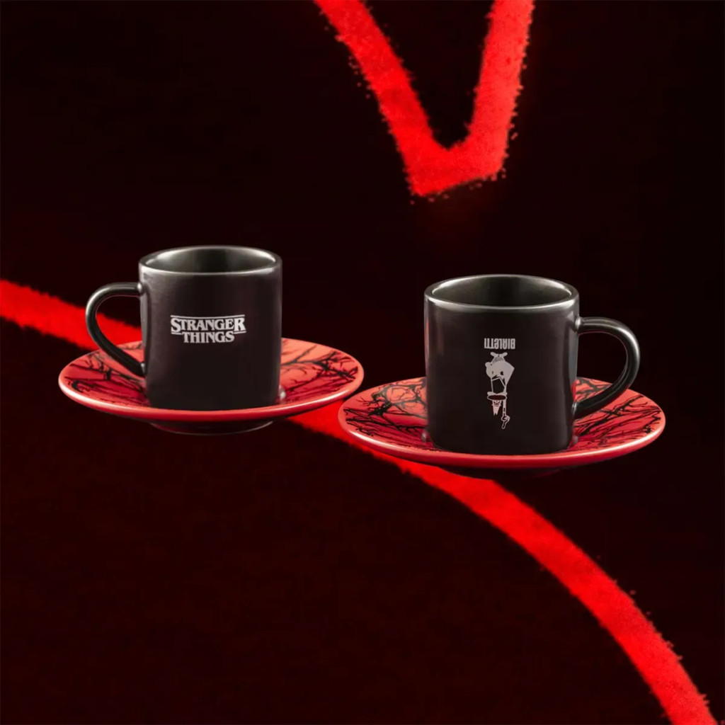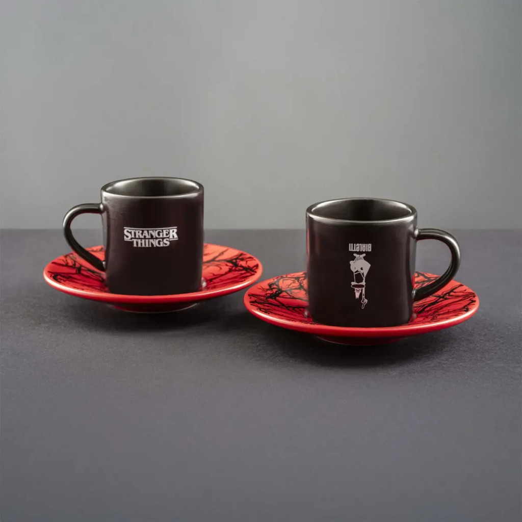 Az új Bialetti x Stranger Things kapszulakollekció szenzációs, új, praktikus, innovatív és hőre reagáló kerámiatermékeket tartalmaz. A hőérzékeny hatás rendkívüli. A kerámia hővel érintkezve megváltozik, feltárva az Upside Down ihlette részleteket. A két Stranger Things ihlette eszpresszócsésze csészealjakkal minden rajongó számára kötelező darab. Hideg állapotban a csésze feketének tűnik, és csészealjakon nyugszik, amelyeket hátborzongató alakok jelölnek, amelyek az Upside Downból bukkannak elő. A kávé kitöltésekor a csésze pirosra vált, és fenyegető mintákat tár fel. Az Upside Down még soha nem volt ilyen közel. Egy olyan hatás, amely még különlegesebbé teszi a kávészünetet.