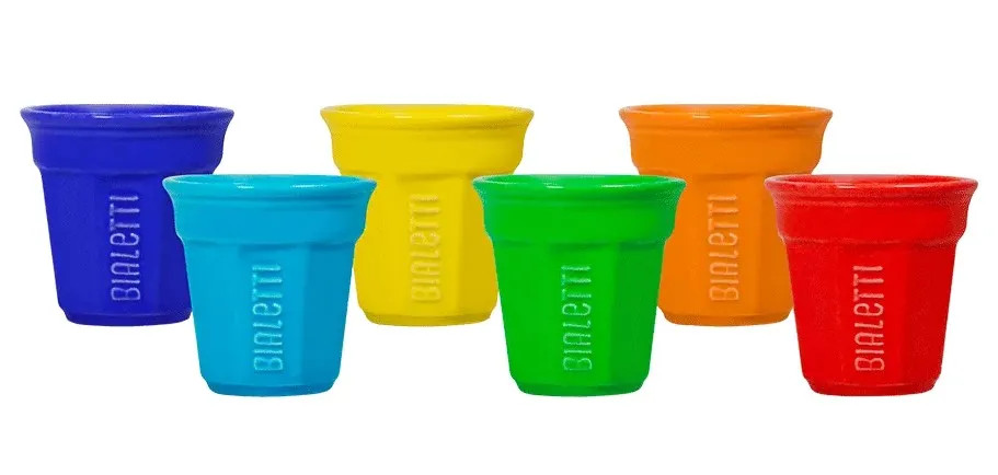 A többszínű, fogantyú nélküli kávéscsészék a legélénkebb színek minden örömét elhozzák az asztalodra.