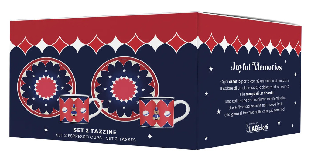 A Bialetti karácsonyi kollekciójának főszereplői a gyermekkori emlékek, melyben a karácsony egy örömteli időszak, tele varázslattal és várakozással. A gyönyörű karácsonyi, játékos mintájú csésze és csészealj szett kiváló karácsonyi ajándék, ünnepi csomgolásban.